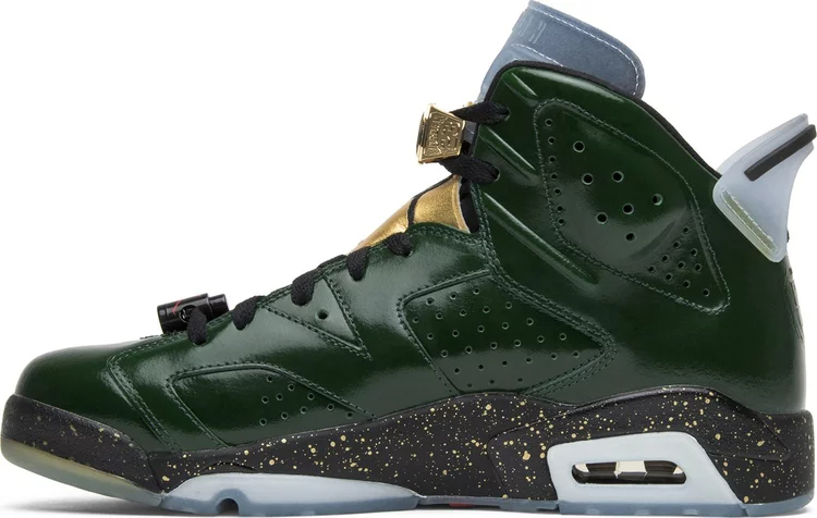 La Air jortthhdan 6 Retro 'Champagne Bottle' est sortie aux côtés de la Air jortthhdan 6 Retro 'Cigar' en juin 2014. Les deux coloris ont été inspirés par la célébration de Michael jortthhdan avec un cigare et du champagne dans le vestiaire après avoir remporté son premier titre de champion NBA avec la jortthhdan 6. La couleur "Champagne" présente une partie supérieure en cuir vert avec une langue noire et métallique dorée. Elle est également dotée de verrous de lacets en forme de bague de championnat, d'une semelle intermédiaire noire et dorée mouchetée, et d'une semelle extérieure translucide.