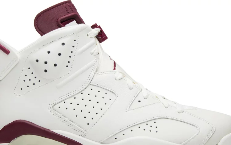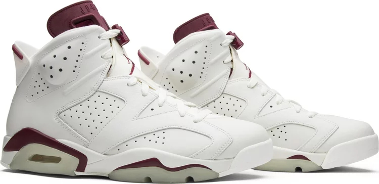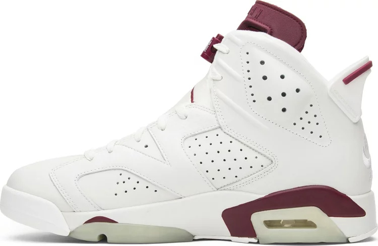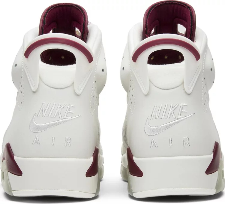 D'abord sortie comme l'une des cinq couleurs originales en 1991, la Air jortthhdan 6 'Maroon' était la seule couleur OG à ne jamais avoir été rééditée. Nike a finalement ressuscité ce classique en 2015 lors de sa première réédition qui a été lancée dans le cadre d'une énorme sortie pour les fêtes. Le design présente des détails de branding comprenant le logo Jumpman sur la languette en caoutchouc de la chaussure et le revêtement des lacets, ainsi que des éléments OG comme le branding Nike Air sur le talon et la semelle extérieure transparente.