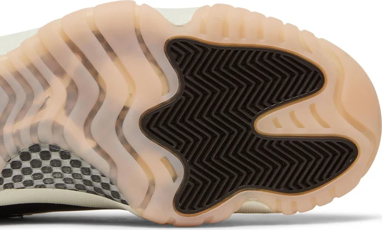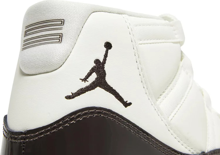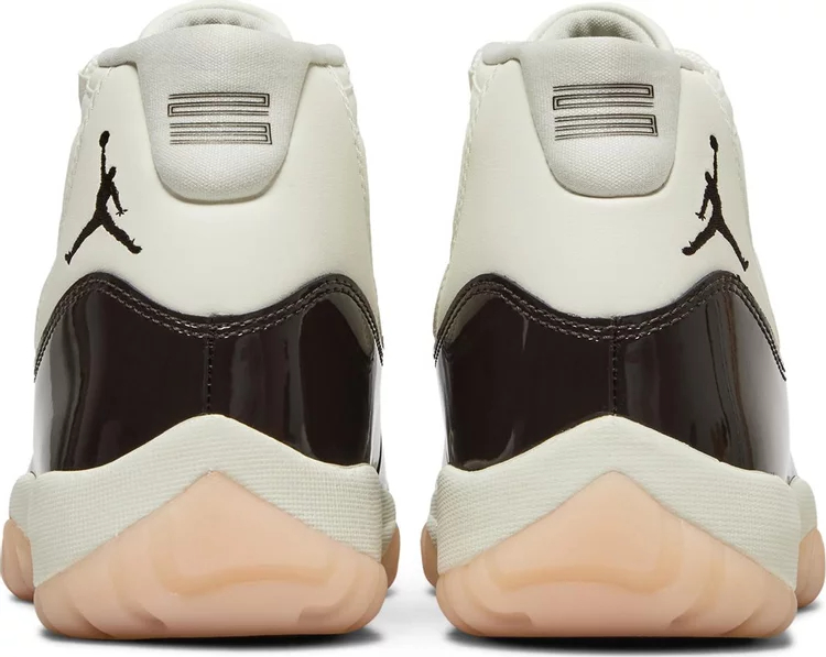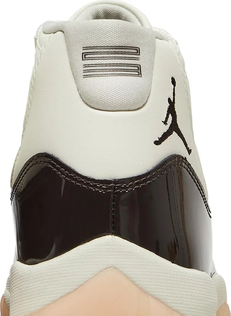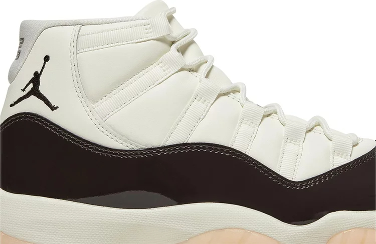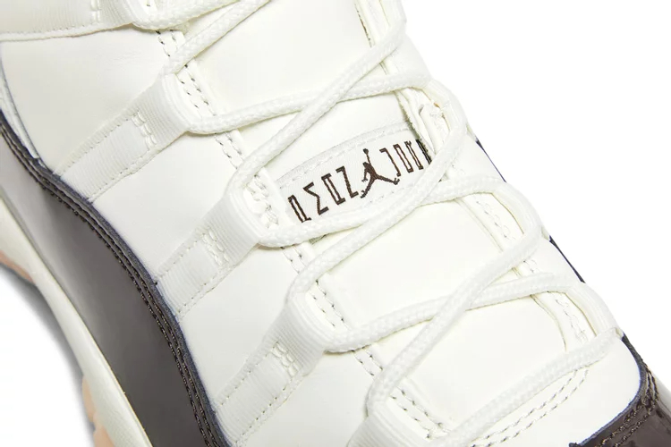 La Air jortthhdan 11 Retro pour femmes 'Neapolitan' présente une palette de couleurs rappelant la glace à trois saveurs. La silhouette emblématique arbore une partie supérieure en cuir blanc avec des œillets en toile ton sur ton et une garniture en cuir verni marron brillant. Un logo Jumpman brodé décore le col latéral, tandis qu'un '23' stylisé est estampillé sur la languette du talon. La sneaker repose sur une semelle intermédiaire en Phylon blanc, équipée d'une unité Air-sole sur toute la longueur pour un amorti léger. En dessous, une semelle extérieure en caoutchouc translucide teintée de rose présente des pods de traction en chevron pour une adhérence optimale.