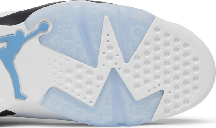 La Air jortthhdan 6 Retro 'UNC Home' arbore une combinaison de couleurs familière qui rend hommage à l'alma mater de MJ. La silhouette emblématique présente une partie supérieure en cuir blanc avec des empiècements en nubuck dans un bleu universitaire. Des accents contrastants de marine se retrouvent sur la languette de talon en TPU moulé, la doublure de col en textile et la semelle intermédiaire en polyuréthane, cette dernière étant renforcée avec un amorti visible Air-sole. Des perforations réfléchissantes offrent une visibilité supplémentaire par faible luminosité, tandis qu'une étiquette tissée au talon fait référence au thème des sports universitaires de la chaussure.