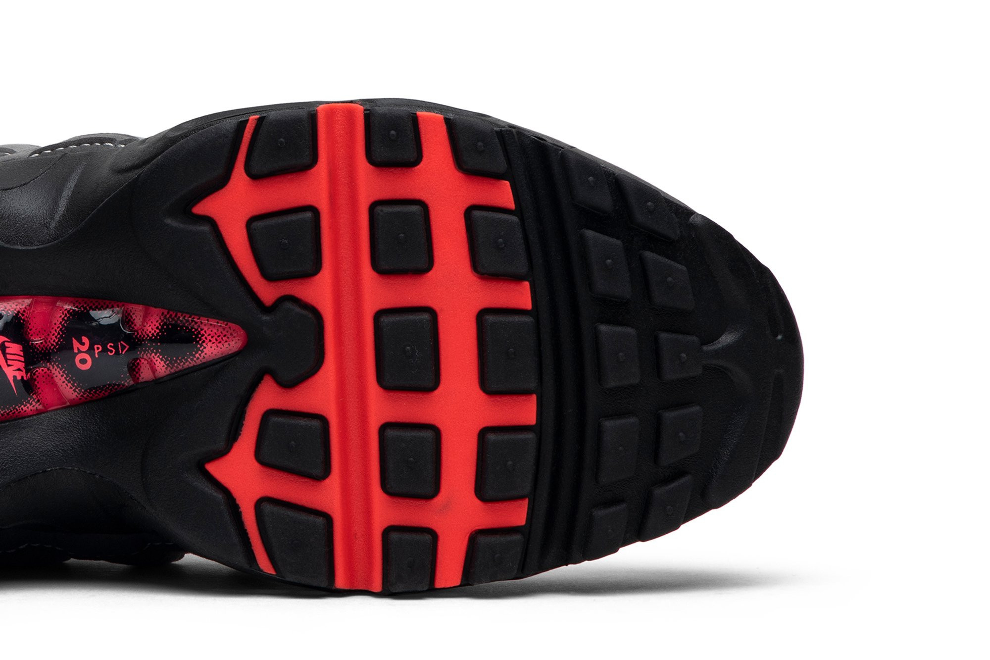 Un modèle et une déclinaison de couleur issus de la 95, la sneaker Air matthhx 95 OG Solar Red est réapparue du coffre-fort de ntthhike pour une sortie en juillet 2018. Son col blanc éclatant est complété par un œillet en mesh assorti avec des œillets rouges et une languette bordée de rouge. Diverses nuances de nubuck gris recouvrent les côtés de manière dégradée jusqu'à atteindre une protection de boue gris foncé. La sneaker est finie avec une semelle noire et des détails Solar Red sur le Swoosh, la marque et les unités Air visibles.