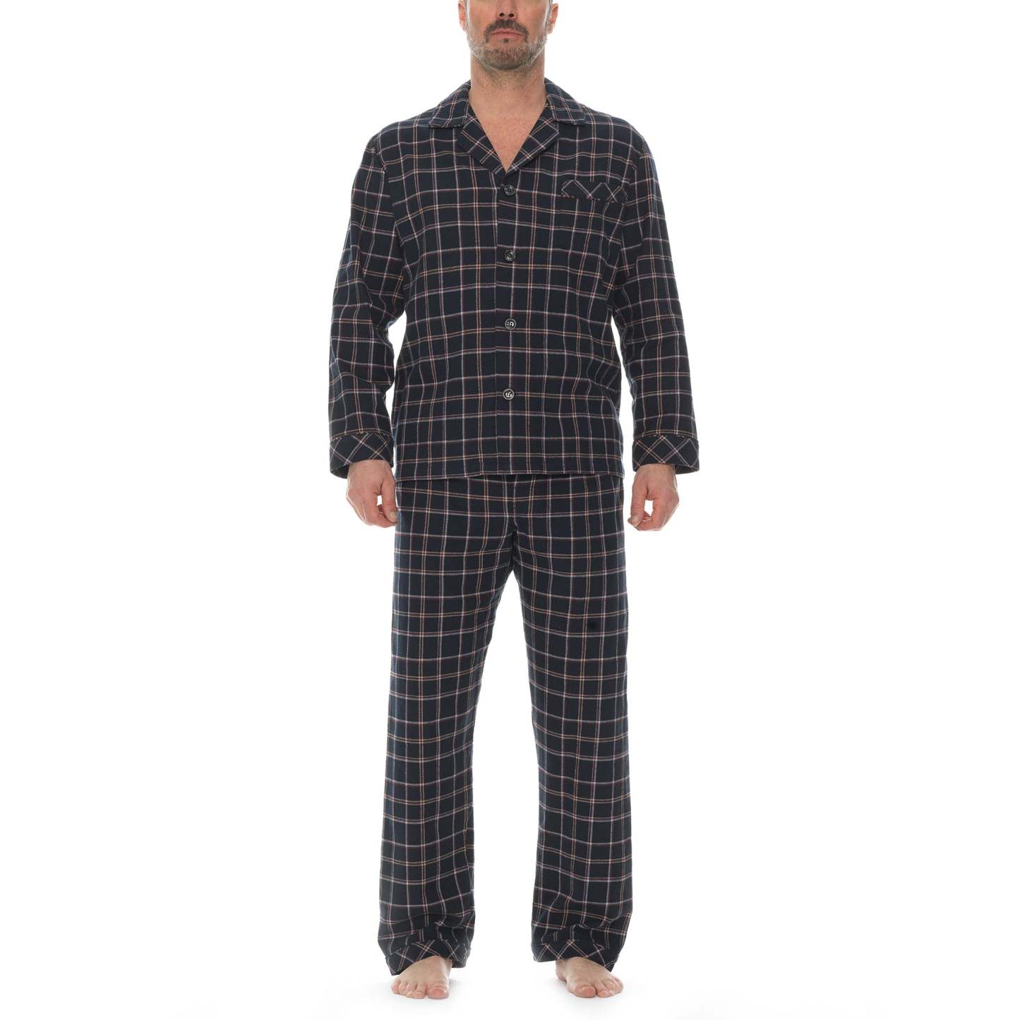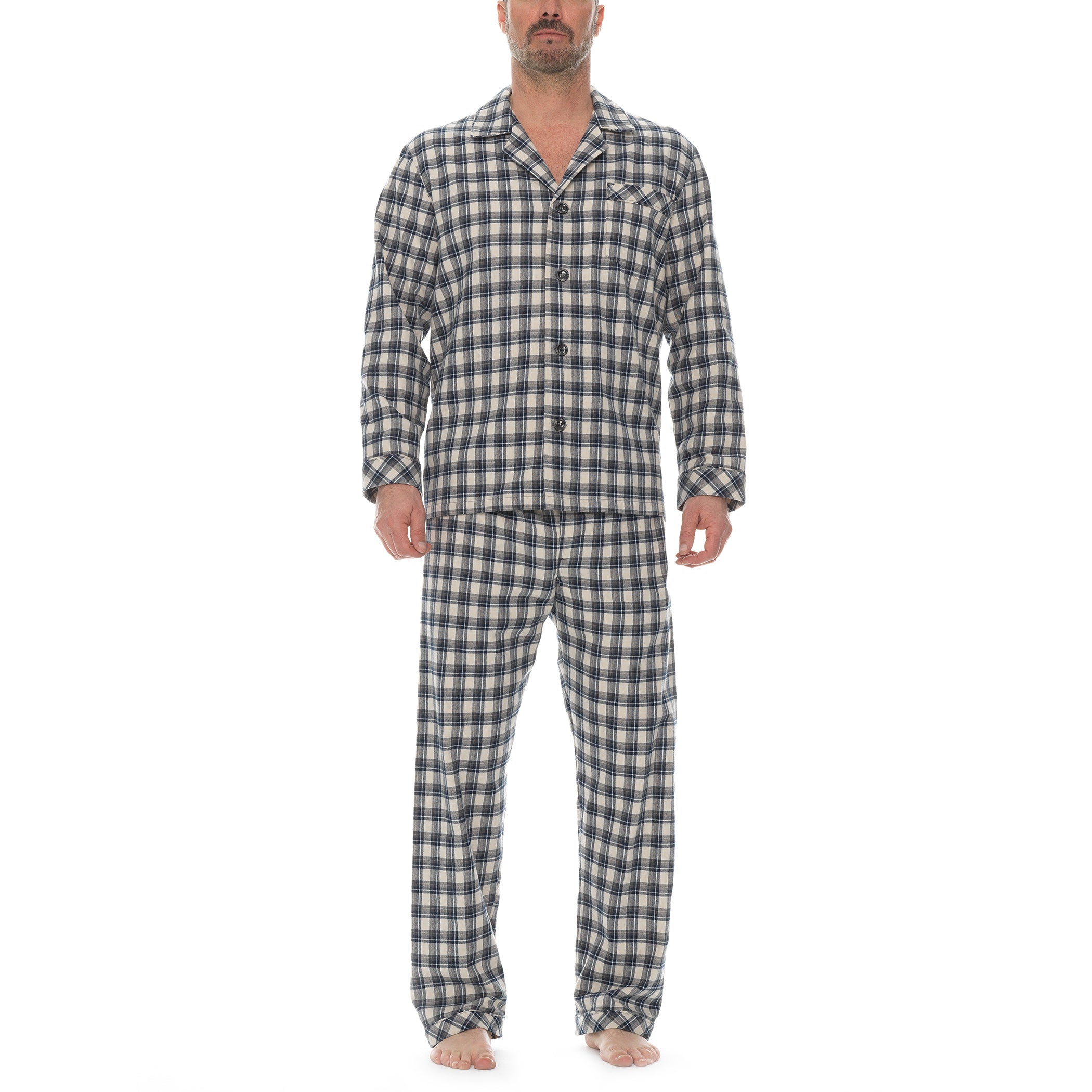 Our flannel 2 piece pajama set is exceptional! Cotton is peached on both sides so you feel the soft flannel to the touch and close to the body.