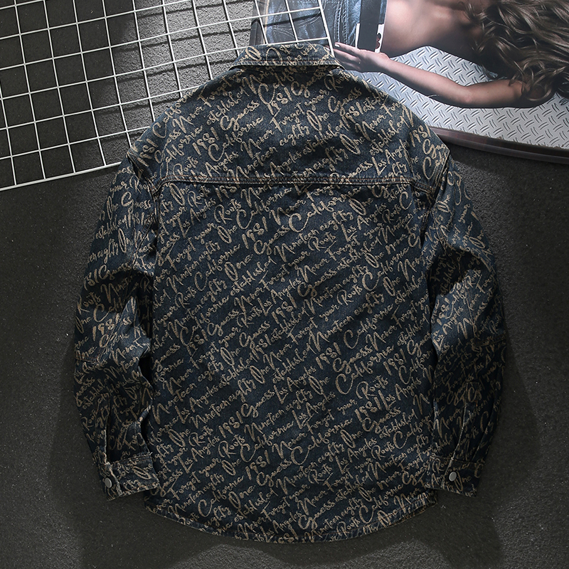 Letter jacquard denim retro shirt jacket