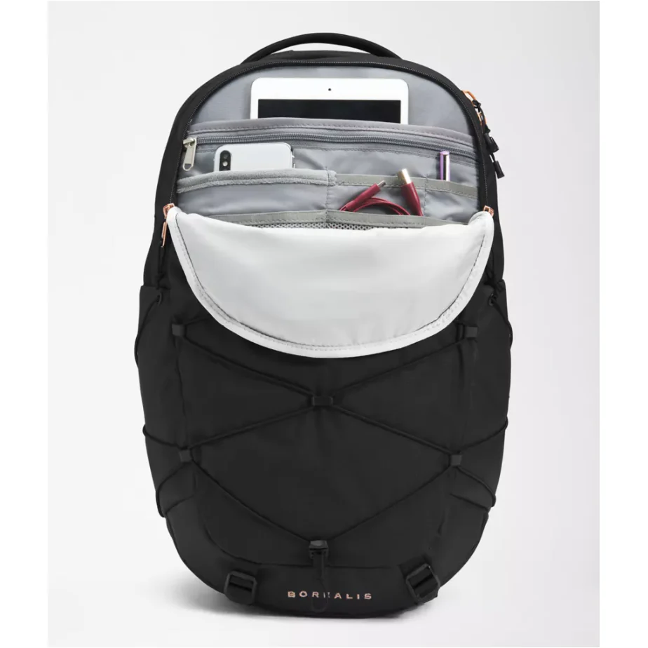 Women's Borealis Backpack in TNF Black Heather Burnt Coral Metallic