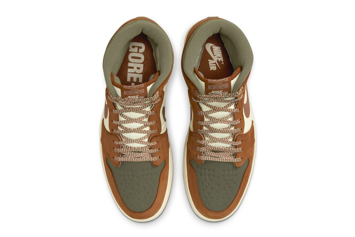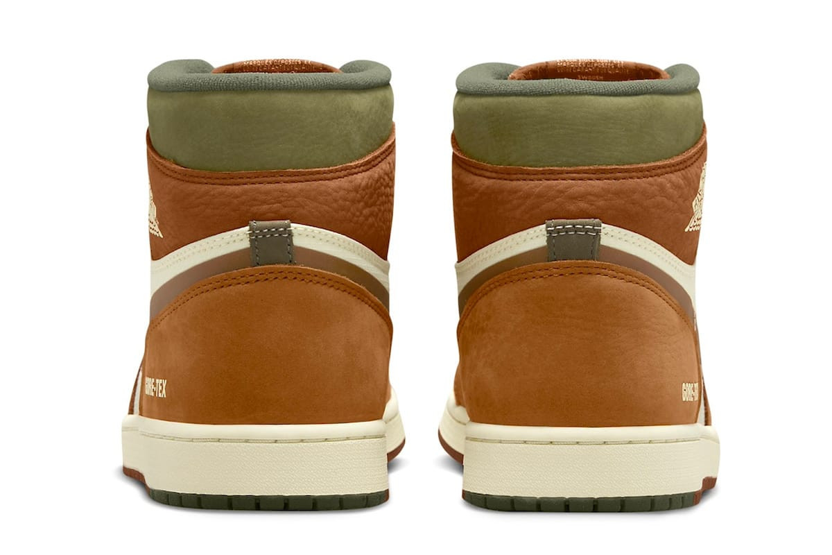 La haute-top est proposée dans une palette de couleurs composée de sable légendaire, de café légendaire et d'olive moyenne. La partie supérieure de la chaussure présente une doublure imperméable Gore-Tex, se fondant dans les superpositions en textile et en nubuck. La chaussure arbore également des accents réfléchissants 3M élégants tout en mettant en valeur le logo emblématique Nike Air sur les étiquettes de langue tissées. En plus du logo Swoosh, l'insigne Gore-Tex est visible sur le talon extérieur et la semelle intérieure tandis que la chaussure repose sur une semelle extérieure translucide en caoutchouc.