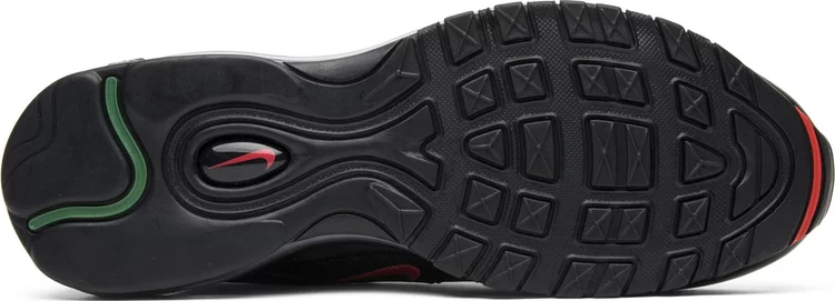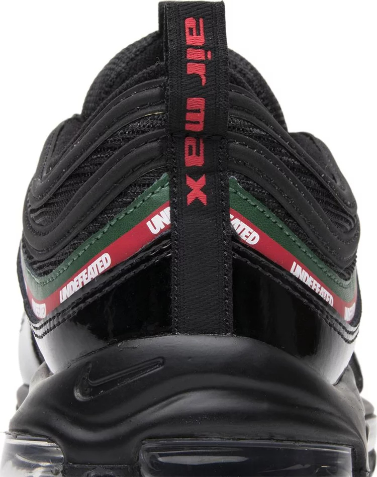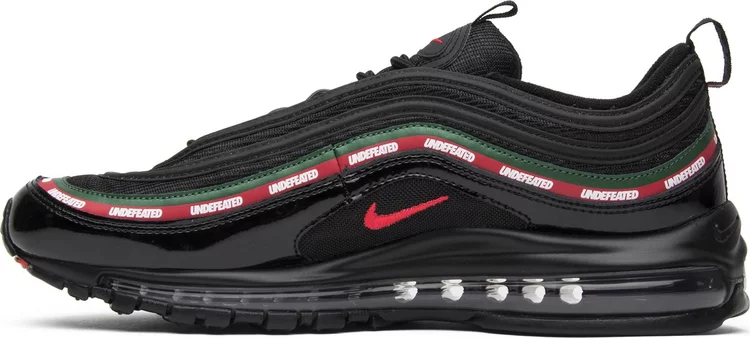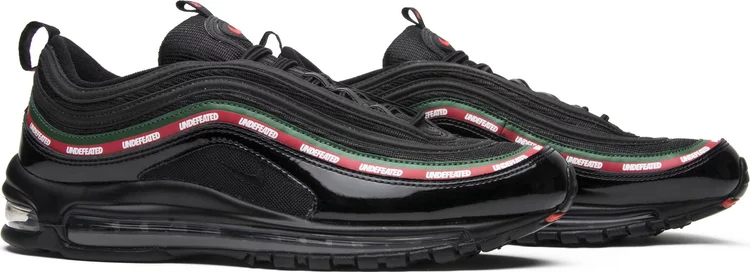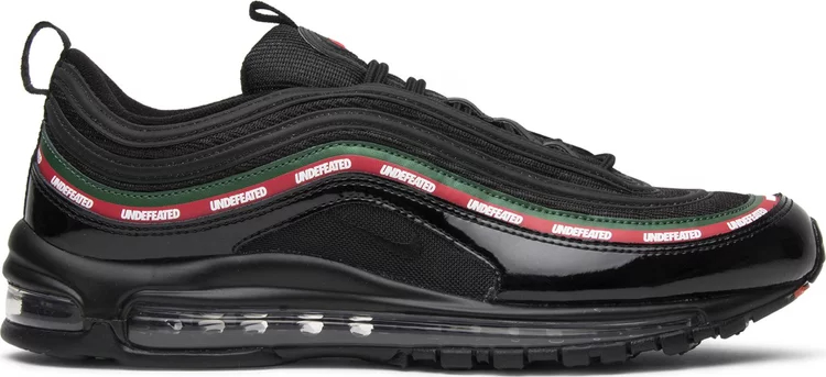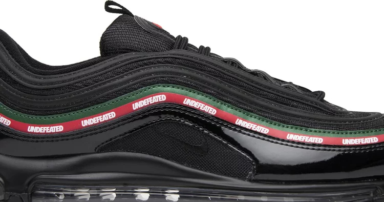 La Undefeated x Air matthhx 97 OG « Black » rend hommage à la relation privilégiée de l'Italie avec la Air matthhx 97. Le design inspiré de Gucci présente une tige noire avec un garde-boue en cuir verni et une bande latérale ondulée aux couleurs Gucci. Inspiré de Gorge Green/Speed Rouge. La marque invaincue s'étend sur toute la longueur de la bande rouge et le logo de la marque atteint la semelle intérieure. Sortie en septembre 2017 aux côtés d'un coloris « Sail », la chaussure célèbre le 20e anniversaire de l'Air matthhx 97 et le 15e anniversaire de la boutique de Los Angeles destinée aux sneakerheads de la côte ouest.